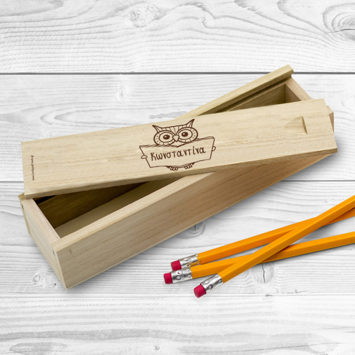 Η Ξύλινη Κασετίνα με Κουκουβάγια Προσωποποιημένη με Όνομα, για Δημοτικό είναι το διαφορετικό δώρο για αγόρια και κορίτσια για το ξεκίνημα της σχολικής χρονιάς που θα ξεχωρίζει στην σχολική τσάντα κάθε μαθητή ή μαθητριας.