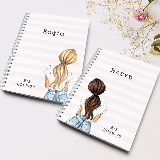 Φέτος καντε την σχολική τσάντα μοναδική και ξεχωριστή, επιλέξτε ένα Προσωποποιημένο Για Φίλες σετ 2 Τετράδια Σπιράλ με Όνομα, έτος, από το familyandfriends.gr που θα εντυπωσιάσει κάθε αγόρι και κορίτσι.