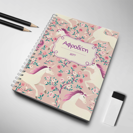 Με Μονόκερους Τετράδιο Σπιράλ Α4 με Όνομα, Έτος, διαφορετικό δώρο για την νέα σχολική χρονιά σε κάθε μαθητή, μαθήτρια, αγόρι και κορίτσι Προσωποποιημένο.