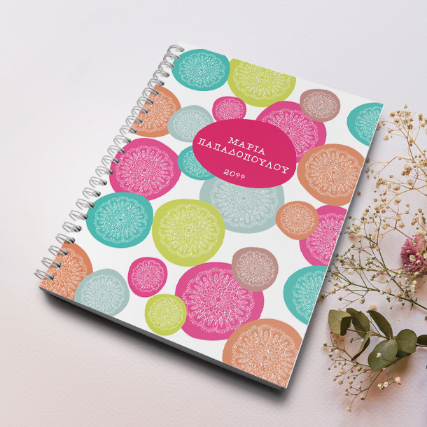 Με σχέδια κύκλους, Τετράδιο Σπιράλ Α4 με Όνομα, Έτος, διαφορετικό δώρο για την νέα σχολική χρονιά σε κάθε μαθητή, μαθήτρια, αγόρι και κορίτσι Προσωποποιημένο.
