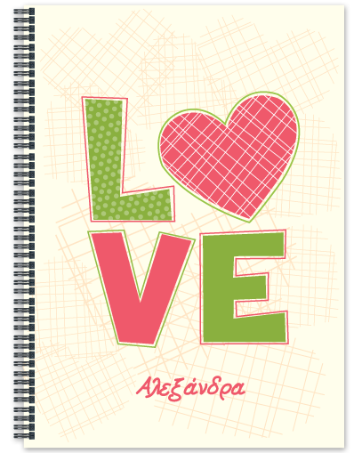To Προσωποποιημένο Σχολικό A4 Τετράδιο Σπιράλ για Κορίτσια, με love και το όνομα του κοριτσιού που το κάνει να ξεχωρίζει από όλα τα άλλα τετράδια που θα έχει στο γραφείο και στην τσάντα της την νέα σχολική χρονιά κάθε μαθήτρια από 8 ετών έως 12 ετών.