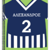 Ένα Τετράδιο Σπιράλ με Κόκκινη Φανέλα Ποδοσφαίρου με όνομα που μπορεί να είναι το δώρο που θα κάνουν οι γονείς στα παιδιά ή ο θείος με την θεία στο ανιψάκι για το ξεκίνημα της σχολικής χρονιάς.