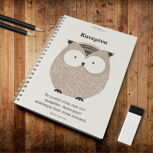 Τετράδιο Σπιράλ Α4 με απόφθεγμα, κουκουβάγια και όνομα