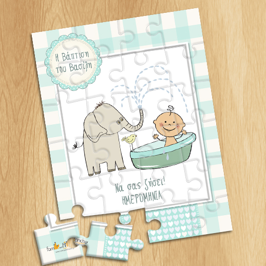 Ψάχνετε δώρο βάπτισης για το αγοράκι ή κοριτσάκι που βάπτιζεται στο φιλικό ή οικογενειακό σας περιβάλλον; Κάντε ένα Μοναδικό Δώρο Βάφτισης Παζλ Δώρο για Βάπτιση Προσωποποιημένο με Ημερομηνία, Όνομα του παιδιού που θα αποκτήσει επισημα στην βαπτιση, για να ευχηθείται στο αγοράκι ή κοριτσάκι, που βαπτίζεται και στους γονείς του.