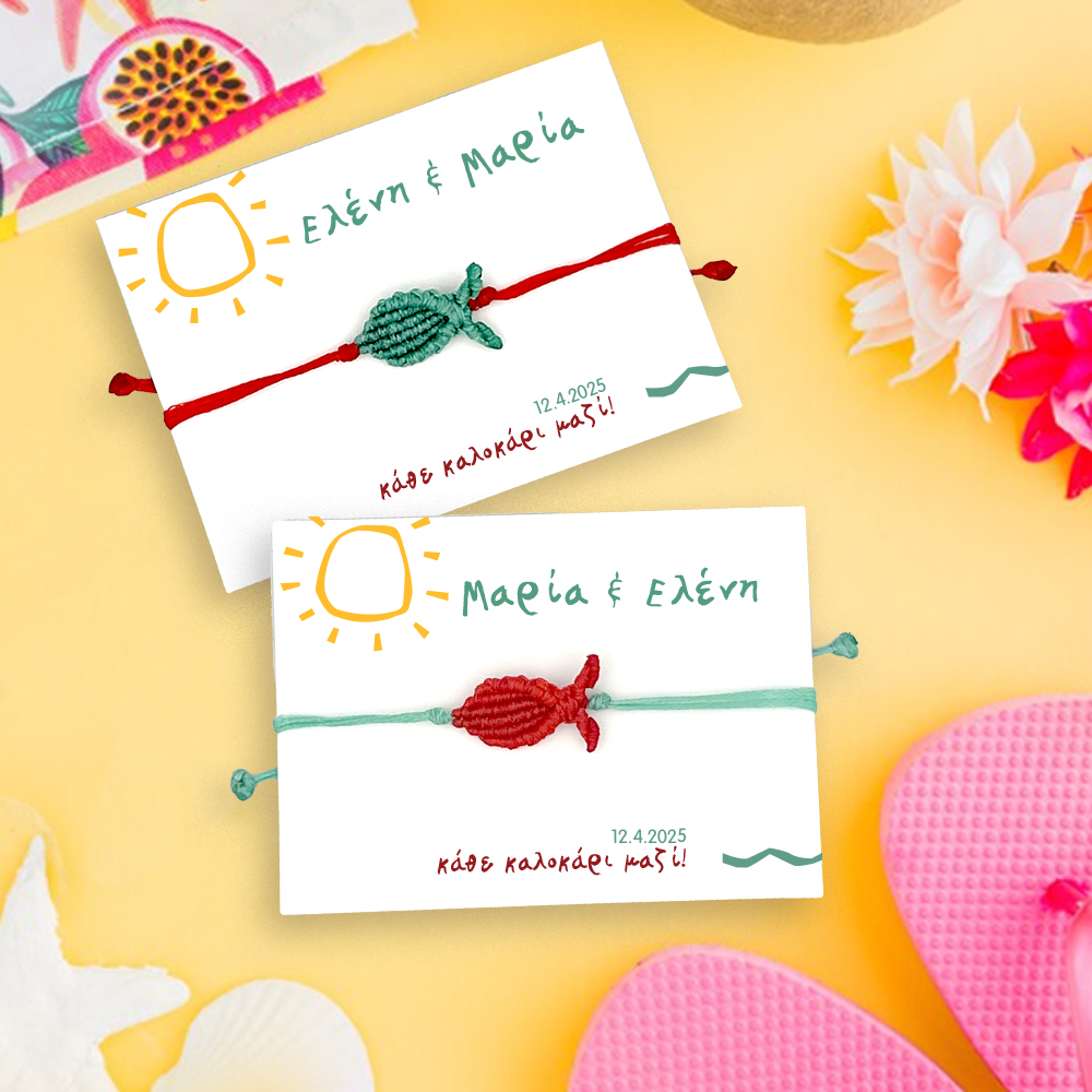 Προσωποποιημένο Σετ 2 Χειροποίητα βραχιόλια μακραμέ ψαράκι για φίλες με Μήνυμα σε καρτελάκι, δώρο για γενέθλια, για να πείτε χρόνια πολλά στη κολλητή σας φίλη. Ένα προσωποποιημένο δώρο που θα ξεχωρίσει από όλα τα άλλα και θα φορά η κολλητή σας σίγουρα για πολλά χρόνια.
