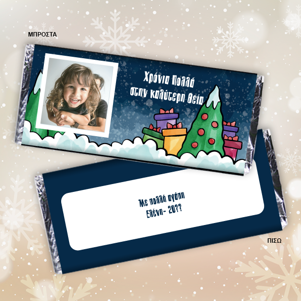 Χριστουγεννιάτικη Σοκολάτα με φωτογραφία με Όνομα και ημερομηνία, είναι το δώρο που θα ξεχωρίσει από όλα τα άλλα που έχετε κάνει μέχρι σήμερα για τα χριστουγεννα ή την πρωτοχρονια κάθε φίλου ή συγγενή.