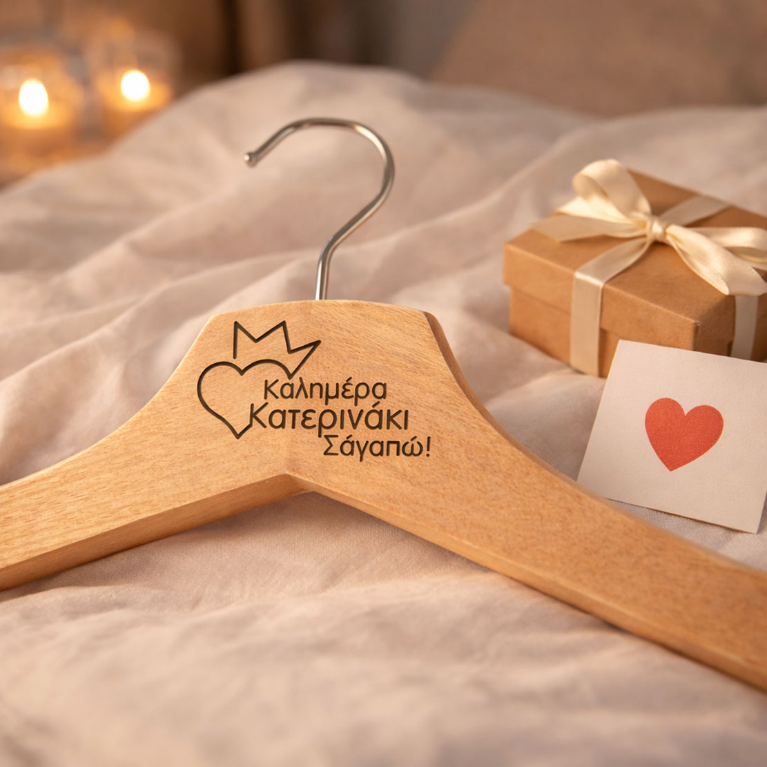 Ξεκινήστε κάθε πρωί με ένα χαμόγελο χάρη στην προσωποποιημένη ξύλινη κρεμάστρα “Καλημέρα με Όνομα”. Ένα μικρό αλλά ουσιαστικό αντικείμενο που μετατρέπει τη ντουλάπα σε μια καθημερινή υπενθύμιση αγάπης.