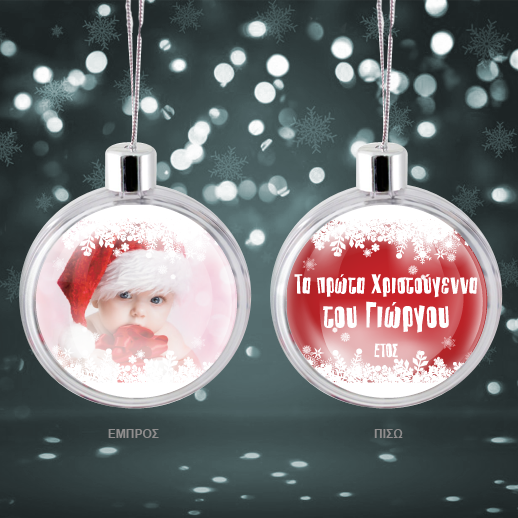 Η Πρωτότυπη Χριστουγεννιάτικη Διακοσμητική Μπάλα με Ευχή, Φωτογραφία τα πρώτα μου Χριστούγεννα είναι το διαφορετικό χριστουγεννιάτικο δώρο που θα κάνετε είτε στον ευατό σας είτε στον παππού και την γιαγιά για να πείτε χρόνια πολλά με ένα γιαφορετικό και ξεχωριστό τρόπο και θα στολίζει το σπίτι τους όχι μόνο αυτές τις γιορτές αλλά και για πολλά ακόμα χρόνια, δημιουργώντας μοναδικές αναμνήσεις κάθε φορά που θα το βλέπουν.