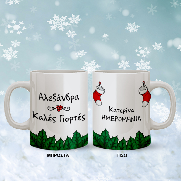 Κάντε και εσείς ένα μοναδικό προσωποποιημένο Χριστουγεννιάτικο Δώρο Κούπα Χριστουγεννιάτικη με γκι, Ευχές, Όνομα για Χρόνια Πολλά.