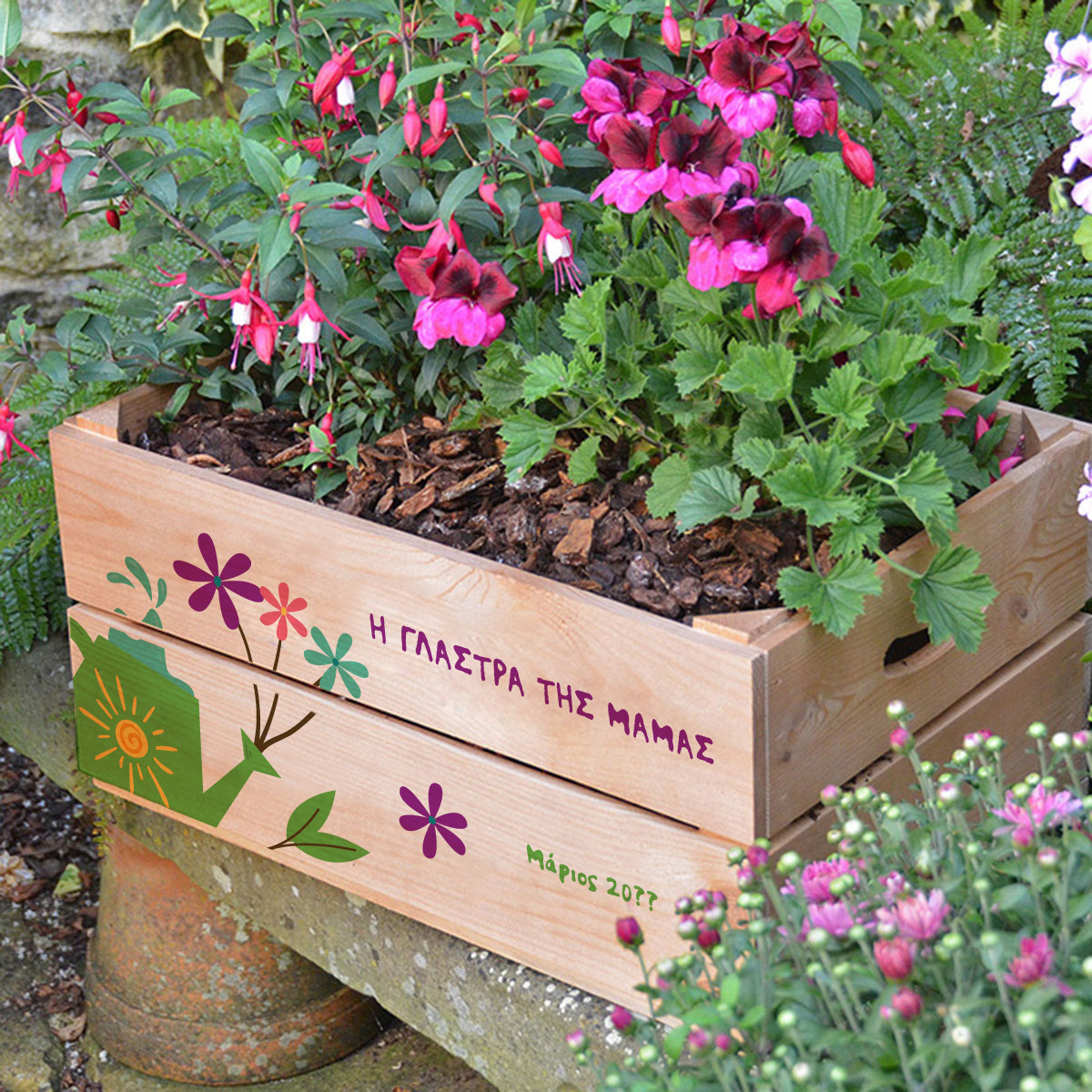 Το Δώρο Ξύλινη Γλάστρα, με Ονόματα ειναι το διαφορετικό ανοιξιάτικο, καλοκαιρινο, φθινοπωρινο, χειμωνιατικο δωρο για κάθε φιλη, φίλο ή συγγενή, που εχει την γιορτη του η τα γενεθλια του!