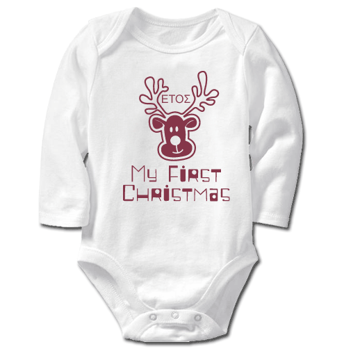 Γιορτινό Φορμάκι με έτος για τα Πρώτα Χριστούγεννα Παιδιού, με Όνομα, με στάμπα Κοντομάνικο Φορμάκι είναι ένα μοναδικό δώρο απο την νονά και τον νονό στο βαφτιστήρι τους.