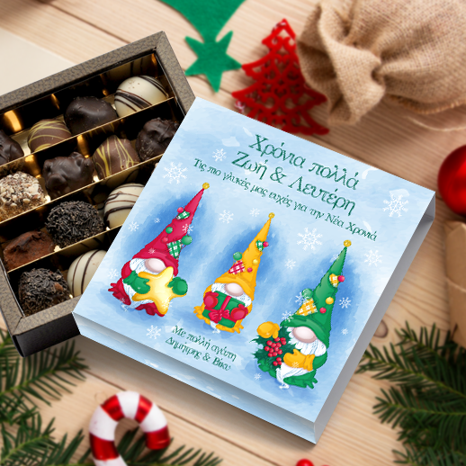 Γιορτινό Κουτί Σοκολατάκια με Ονόματα και Ευχές