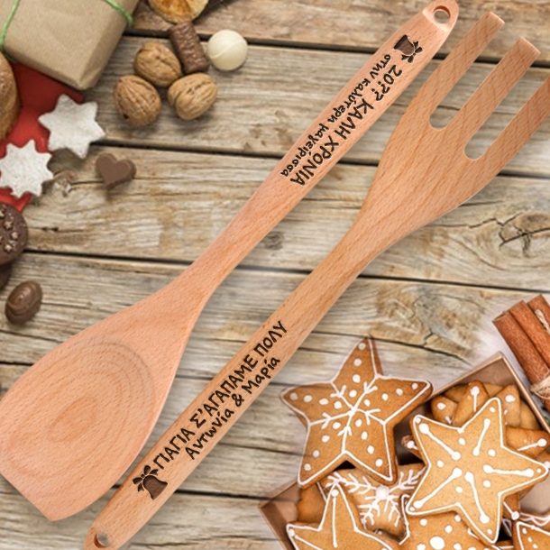 Γιορτινό Σετ Ξύλινες Πιρούνα, Κουτάλα με Μήνυμα, Όνομα με laser χάραξη για τα Χριστούγεννα, που θα εντυπωσιάσει την μαμα και θα δείξετε ότι την θυμηθήκατε και πόσο πολύ την αγαπάτε!