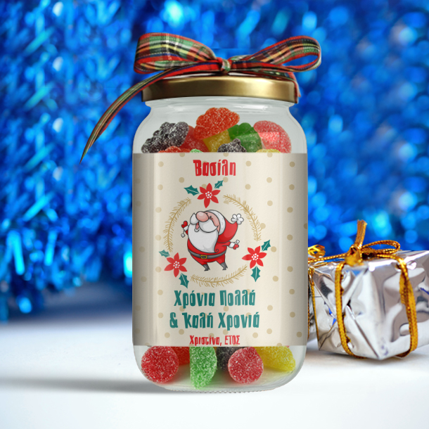 Δώρο για τα Χριστούγεννα Γιορτινό Βαζάκι καραμέλες με Αη Βασίλη, Προσωποποιημένο με Ευχές και Όνομα για Καλή Χρονιά και Καλά Χριστούγεννα με Όνομα, με έτος και το όνομά του, είναι ένα πρωτότυπο και οικονομικό δώρο που μπορείτε να κάνετε στισ γιορτές που θα εντυπωσιάσει, για να του δείξετε ότι τον θυμηθήκατε και πόσο πολύ τον αγαπάτε!