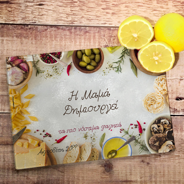 Το Πρωτότυπο Δώρο Γυάλινη Επιφάνεια Κοπής Προσωποποιημένo Δώρο με Όνομα, Μήνυμα, είναι ένα οικονομικό δώρο που μπορεί να χρησιμποποιηθεί στην κουζίνα της μαμας ή της γιαγιάς για να κόβει λαχανικά ή ότι άλλο χρειάζεται, που θα εντυπωσιάσει οποιον το παραλάβει και θα δείξετε ότι τον θυμηθήκατε και πόσο πολύ τον αγαπάτε!