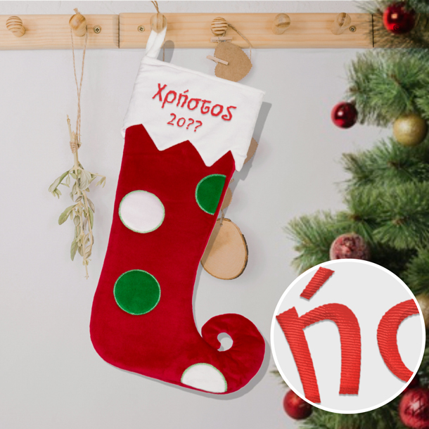 Κεντητή Κόκκινη με Βούλες Χριστουγεννιάτικη Μπότα, με Όνομα