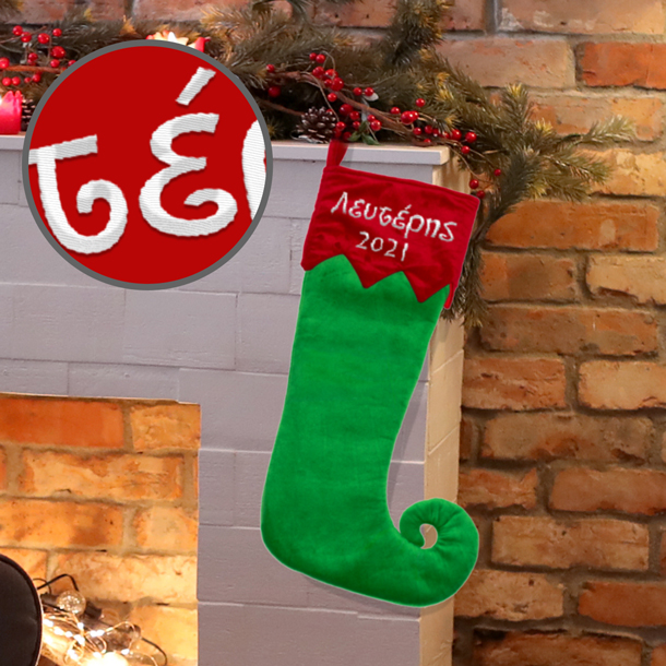 Χριστουγεννιάτικη Μπότα με Κεντημένο Όνομα για αγόρια, που μπορείτε να βάλετε το δωρο των Χριστουγέννων ή να την γεμίσετε με καραμελες και σίγουρα θα είναι το χριστουγεννιάτικο δώρο που θα ξεχωρίσει από όλα τα άλλα γιατί θα είναι το δώρο Χριστουγέννων που θα μείνει αναμνηστικό για πάντα και θα στολίζει το σπίτι. Η Διακοσμητική για Χριστούγεννα Κεντητή, Embroidered Χριστουγεννιάτικη Μπότα Πράσινη με Όνομα μπορεί να είναι το δώρο της γιαγιάς στο εγγονάκι αυτά τα χριστούγεννα που ηλικίας νηπιαγωγείου ή παιδικού σταθμού.
