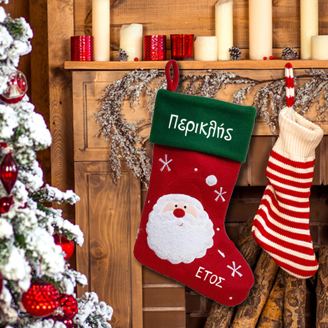 Κόκκινη Μπότα με Άι Βασίλη, Χριστουγεννιάτικη Διακοσμητική με Όνομα
