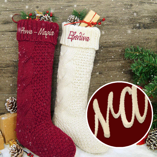 Πλεκτή με Κέντημα Μπότα Διακοσμητική με Όνομα θα είναι σίγουρα το χριστουγεννιάτικο δώρο που θα ξεχωρίσει από όλα τα άλλα γιατί θα είναι το δώρο Χριστουγέννων που θα μείνει αναμνηστικό για πάντα και θα στολίζει κάθε χρόνο το σπίτι.