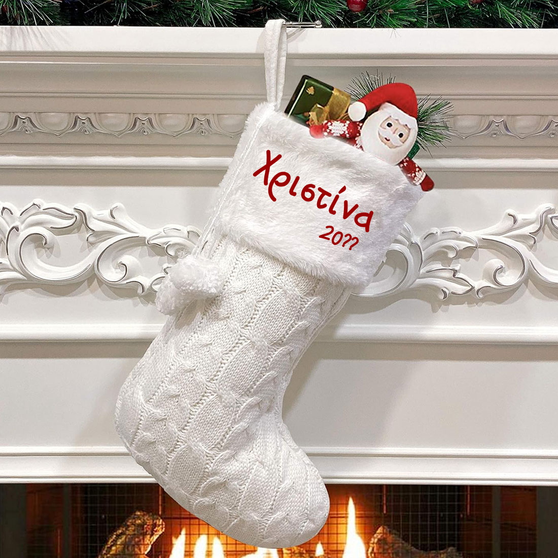 Η έκπληξη γίνεται μεγαλύτερη, αν βάλετε το δωρο των Χριστουγέννων μέσα στην Πλεχτή Χριστουγεννιάτικη Κάλτσα με Όνομα, Pom Pom και θα γίνει το χριστουγεννιάτικο δώρο που θα ξεχωρίσει από όλα τα άλλα, και θα μείνει αναμνηστικό για πάντα στολίζοντας το σπίτι κάθε χρόνο.