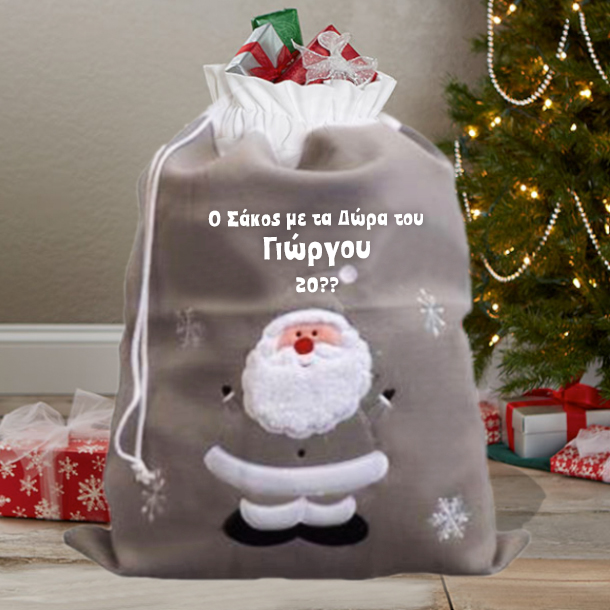 Σάκος για Δώρα με Άη Βασίλη, Προσωποποιημένος με Όνομα, Έτος Δώρο Χριστουγέννων για παιδιά από 1 έτους, 2 ετων, 3 ετων, 4 ετων, 5 ετων, 6 ετων, 7 ετων, 8 ετων, 9 ετων, 10 ετων, 11 ετων, έως 12 ετών, στο δημοτικό ή το γυμνάσιο και για όλους τους μεγάλους που νοιώθουν παιδιά εστω και για λίγο στις Γιορτές!