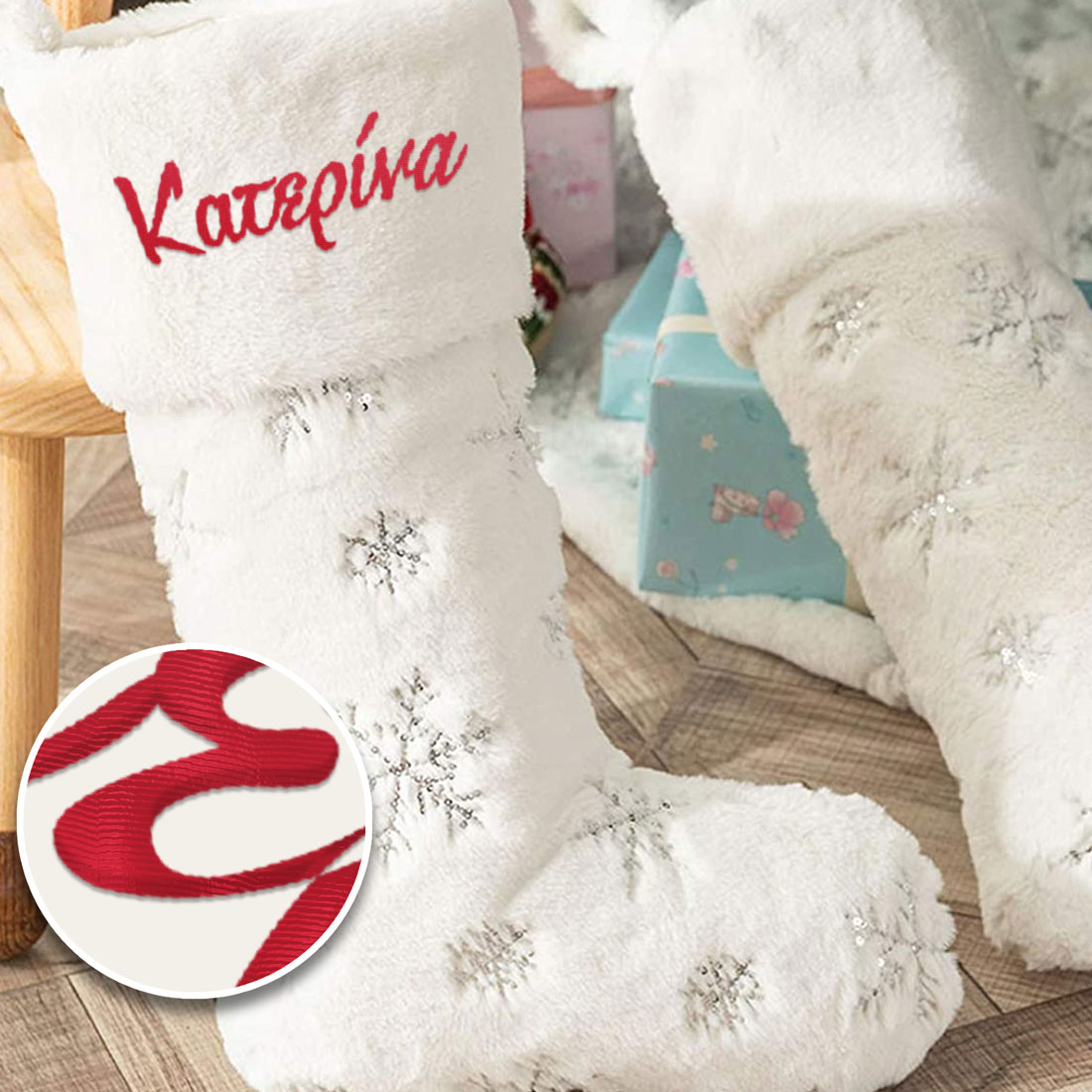 Κεντημένο Όνομα σε Λευκή Χριστουγεννιάτικη Μπότα