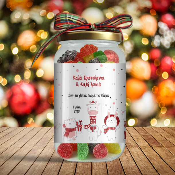 Καραμέλες σε Βαζάκι με Χαρακτήρες Γιορτινό με Ευχές
