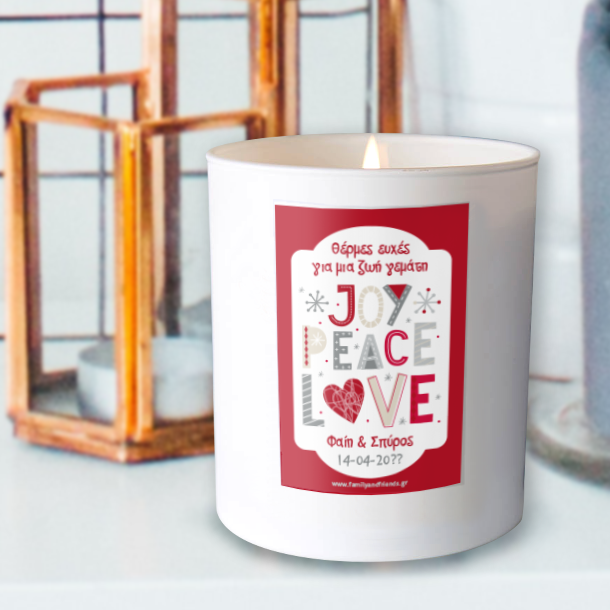 Το Προσωποποιημένο Δώρο Κερί σε Λευκό Ποτήρι με Μήνυμα και Ευχές για Γιορτές για τις γιορτές των χριστουγένννων, μπορεί να είναι το δώρο σας, στην νονα, θεία, στην Μαμά, τον Μπαμπά και κάθε άλλο φιλικό ή συγγενικό πρόσωπο και είναι ένα ξεχωριστό δώρο διαφορετικό από κάθε άλλο που έχετε κάνει μέχρι σήμερα, γιατί είναι προσωπικό και δημιουργεί μοναδικές αναμνήσεις για πάντα.