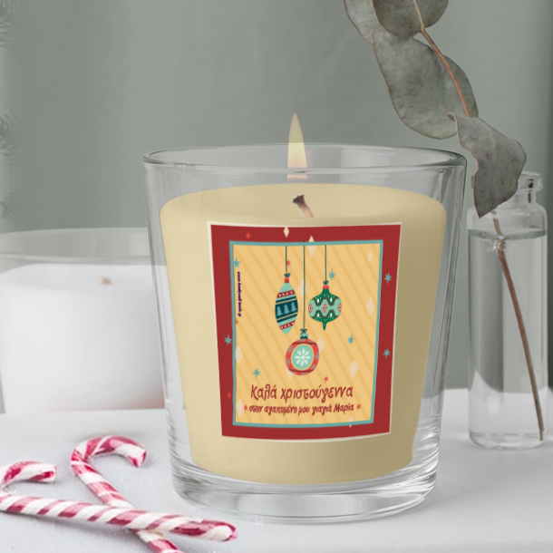 Γιορτινό Αρωματικό Κερί σε Ποτήρι με Ευχές, Ονόματα, για να το προσφέρετε στην Γιαγιά αυτά τα Χριστούγεννα όταν θα συναντηθείτε στις γιορτές. Χριστουγεννιάτικο Γιορτινό Αρωματικό Κερί σε Ποτήρι με Ευχές, Ονόματα, για να πείτε Χρόνια Πολλά για τα Χριστούγεννα και την πρωτοχρονιά σε φίλους ή συγγενείς.