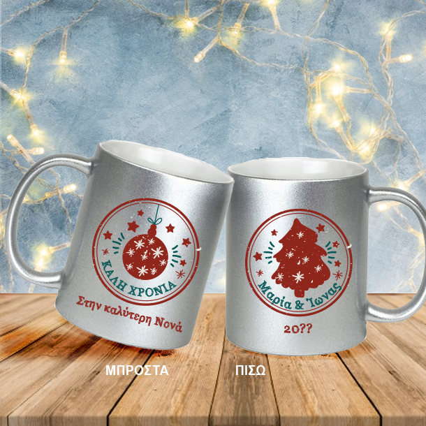 Κούπα με γκρι Γκλίτερ, Γιορτινή με Ευχές, Ονόματα, για τις Γιορτές των Χριστουγέννων στην Μαμά, τον Μπαμπά και κάθε άλλο φιλικό ή συγγενικό πρόσωπο, ένα ξεχωριστό δώρο διαφορετικό από κάθε άλλο που έχετε κάνει μέχρι σήμερα, γιατί είναι προσωπικό και δημιουργεί μοναδικές αναμνήσεις για πάντα.