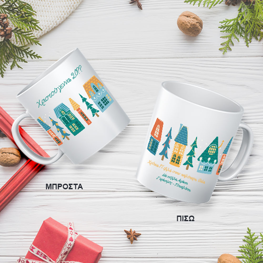 Οικονομικό και ξεχωριστό Προσωποποιημένο Δώρο Χριστουγεννιάτικο, Κούπα με Χριστουγεννιάτικο τοπίο, Ονόματα, Ευχές, Έτος για τους φίλους μας.