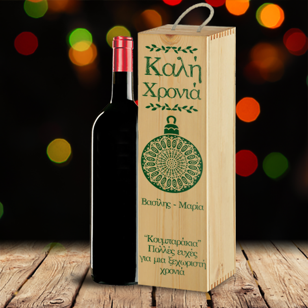 Το μοναδικό Χριστουγεννιάτικο Δώρο Κουτί Ξύλινο για Κρασί Προσωποποιμενο για Καλή Χρονιά, είναι το προσωποποιημένο δώρο που φτιάχνεται χειροποίητα αποκλειστικά για όποιον εσείς αποφασίσετε να κάνετε το δώρο, για να το δώσετε αναμνηστικό τις ημέρες των γιορτών γιατί είναι το δώρο έξω από τα συνηθισμένα για τον θείο την θεία, τον παππού ή την γιαγιά.