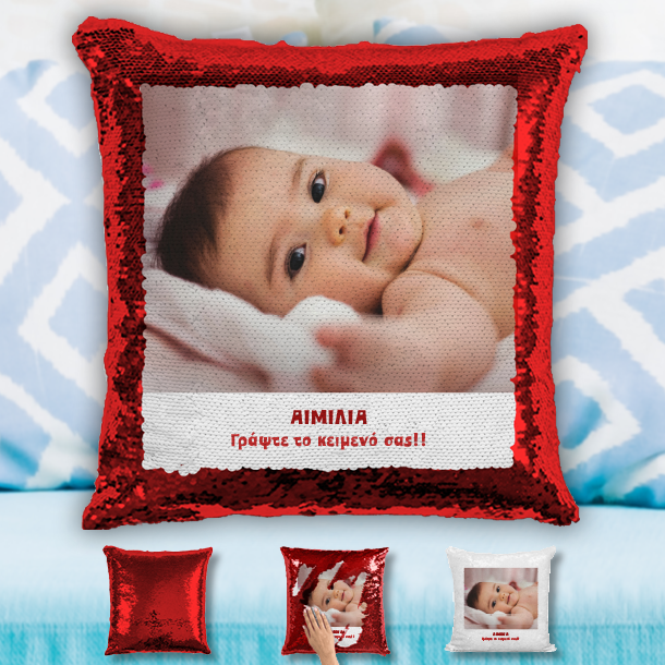 Μαξιλάρι με Παγιέτες, Μήνυμα και Φωτογραφία, Διακοσμητικό