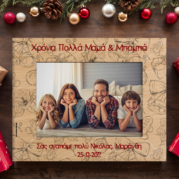 Με μήνυμα, Ονόματα, Ξύλινη Κορνίζα για Φωτογραφία είναι ένα ξεχωριστό δώρο στον Μπαμπά ή την Μαμά για τα χριστούγεννα που θα περάσετε μαζί.