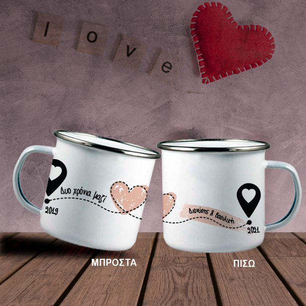 Με τόξο, Καρδιά, κούπα Enamel Μεταλλική με Ονόματα, Έτος, για Ερωτευμένους που ξεχωρίζει, για την γιορτή του Αγίου Βαλεντίνου & την κάθε επέτειο ερωτευμένου ζευγαριού.