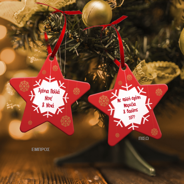Μεταλλικό Στολίδι Αστέρι διπλής όψης, με Ονόματα, Ευχές, Διακοσμήστε το σπίτι σας και Δωρίστε ένα μοναδικό χριστουγεννιάτικο στολίδι που ξεχωρίζει από όλα όσα έχετε αγοράσει τα προηγούμενα χρόνια.