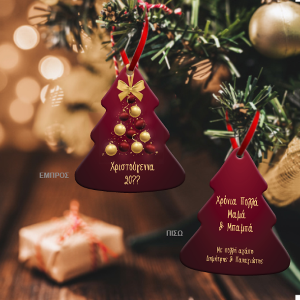 Μεταλλικό Στολίδι Δένδρο διπλής όψης, με Ευχές, Ονόματα, Διακοσμήστε το σπίτι σας και Δωρίστε ένα μοναδικό χριστουγεννιάτικο στολίδι που ξεχωρίζει από όλα όσα έχετε αγοράσει τα προηγούμενα χρόνια.