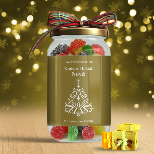 Γιορτινό Δώρο Προσωποποιημένο Βαζάκι καραμέλες για την Νονά, με Όνομα και Ευχές και ημερομηνία, είναι το δώρο που θα ξεχωρίσει από όλα τα άλλα που έχετε κάνει μέχρι σήμερα για τα χριστουγεννα ή την πρωτοχρονια κάθε φίλου ή συγγενή.