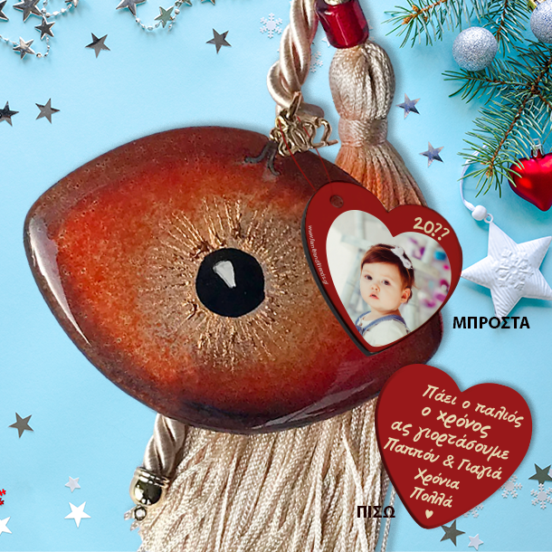 Προσωποποιημένα Γούρια διακοσμητικά με Φωτογραφία, Ευχές, Δώρο για τα Χριστούγεννα, για να ευχηθείτε Καλή Χρονιά και Καλά Χριστούγεννα. Ένα πρωτότυπο και οικονομικό δώρο που μπορείτε να κάνετε στις γιορτές που θα εντυπωσιάσει, στο σπίτι που είστε καλεσμένοι τις γιορτές! Το Πρωτοτυπο Δώρο Χριστουγεννων για την νονα, νονο, Μάτι Γούρι Γυάλινο Διακοσμητικό με Ονόματα, Ευχές, για καλή χρονιά, φτιάχνεται κάθε φορά αποκλειστικά μόνο για τον δικό σας νονό, φίλο ή συγγενή γιατί αμέσως μετά την παραγγελία σας!