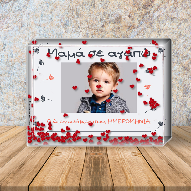 Πρωτότυπη Προσωποποιημένη Κορνίζα με αιωρούμενες καρδούλες, σε αγαπώ με Όνομα, Φωτογραφία, στην πιο ξεχωριστή Μαμά, με ονόματα και ημερομηνία, ένα Μοναδικό Προσωποποιημένο Δώρο για την γιορτή της Μητέρας, για να πείτε χρόνια πολλά στην αγαπημένη σας μαμά που γιορτάζει.