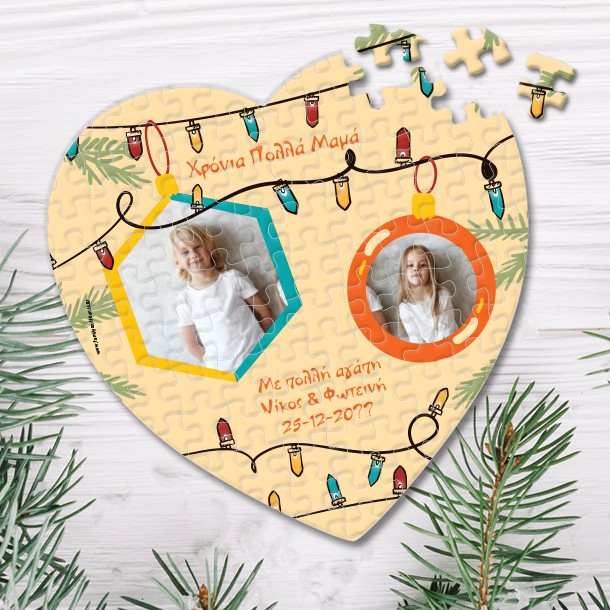 Γιορτινό Παζλ Καρδιά με 2 Φωτογραφίες & Ονόματα, Δώρο Χριστουγέννων, για Χρόνια Πολλά στον κολλητό σας φίλο με αγαπημένες φωτογραφίες, για ευχηθείτε Χρόνια Πολλά. Ανακαλύψτε ένα ξεχωριστό και πρωτότυπο Χριστουγεννιάτικο δώρο για τις γιορτές των Χριστουγέννων για κάθε φίλη ή κολλητή! Παζλ Καρδιά με 2 Φωτογραφίες & Ονόματα, Προσωποποιημένο Δώρο για τις γιορτές των χριστουγένννων, στην νονα, θεία ή την Μαμά.