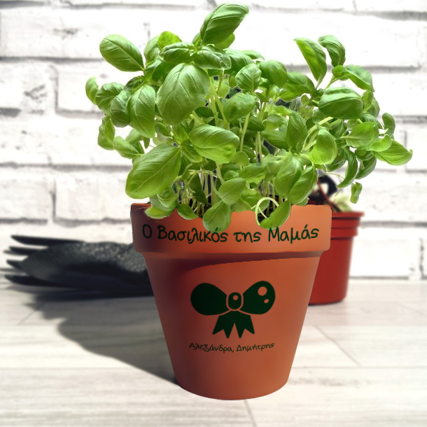 Προσωποποιημένο Δώρο Πήλινη γλάστρα με φιόγκο, Ο Βασιλικός της, Όνομα, για κάθε αφορμή με Όνομα ενα πρωτότυπο και ξεχωριστό Δώρο γενεθλίων, ονομαστικής γιορτης για την γιαγια, την Νονά, την Μαμά, την θεία ή φίλο, φίλη με οποιαδήποτε αφορμή.