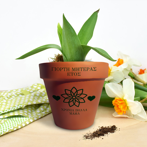Ένα μοναδικό αναμνηστικό δώρο που θα μείνει για παντα και θα θυμιζει την γιορτη της μητερας 2018 στην μαμα, Πήλινη γλάστρα με λουλούδι, για κάθε αφορμή με Όνομα της Μαμάς με Όνομα και ημερομηνία.