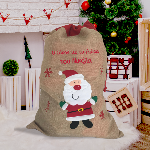 Πρωτότυπος Προσωποποιημένος Σάκος για δώρα Χριστουγέννων με Όνομα του Παιδιού είναι ένα διαφορετικό χριστουγεννιάτικο δώρο για αγόρια, Κορίτσια. Ο χριστουγεννιάτικος Σάκος λινός μπεζ για δώρα Άι Βασίλη με Όνομα, είναι ένα δώρο έκπληξη ακόμα και για Ανδρες και γυναίκες, τον Μπαμπά ή την Μαμά στις Γιορτές. Μέσα στο λινός μπεζ σάκο για δώρα Άι Βασίλη με Όνομα, Έτος μπορείτε να βάλετε τα δώρα των Χριστουγέννων & να τον γεμίσετε με καραμέλες. Έτσι θα είναι το χριστουγεννιάτικο δώρο που θα ξεχωρίσει από όλα τα άλλα γιατί θα μείνει αναμνηστικό για πάντα και θα στολίζει το όποιο σπίτι το προσφέρετε.
