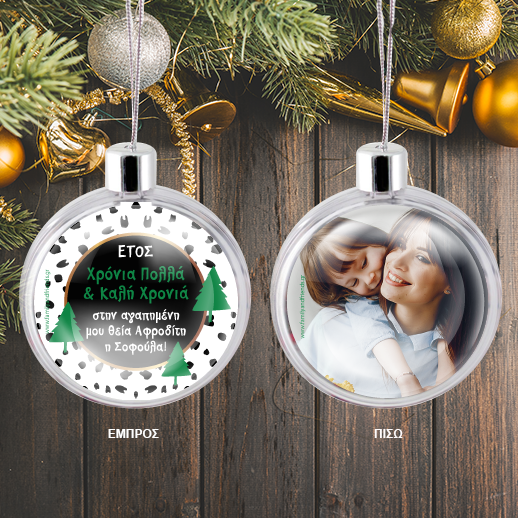 Στολίδι Διάφανη Μπάλα με Φωτογραφία, Ευχές για το Χριστουγεννιάτικο δένδρο σας αυτά τα Χριστούγεννα.