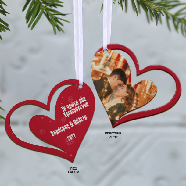 Το Χριστουγεννιάτικο Στολίδι Καρδιά Ξύλινο με Φωτογραφία, Ευχές για δέντρο Χριστουγεννιάτικο, προσωποποιημένο με όνομα είναι το διαφορετικό χριστουγεννιάτικο δώρο για κάθε ζευγάρι.