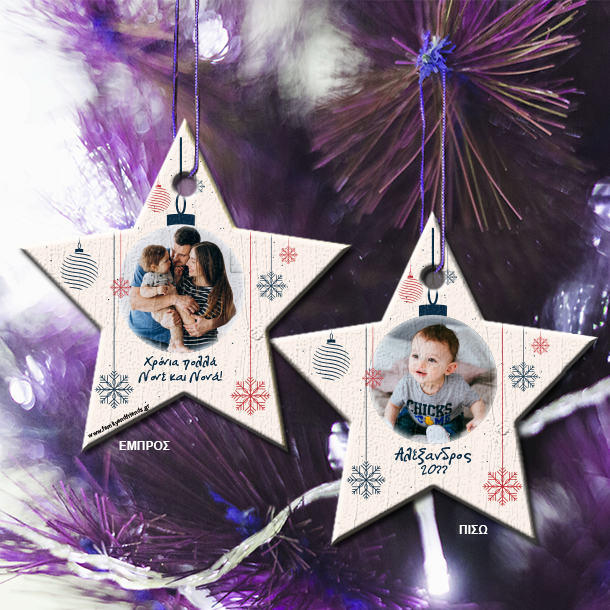 Με 2 Φωτογραφίες Αστέρι Στολίδι & Ευχές, για Δένδρο. Αυτές τις γιορτές διακοσμήστε το σπίτι σας με τα μοναδικά προσωποποιημενα χριστουγεννιατικα στολίδια που ξεχωρίζουν από όλα όσα έχετε αγοράσει τα προηγούμενα χρόνια.