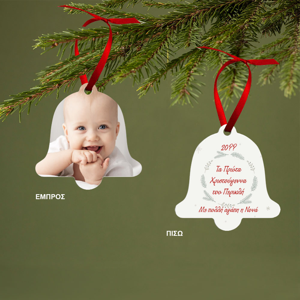 Στολίδι τα Πρώτα Χριστούγεννα με Όνομα, Φωτογραφία, ένα προσωποποιημένο Στολίδι διπλής όψης για το Χριστουγεννιάτικo Δένδρο, για τα πρώτα Χριστούγεννα του μωρού σας αγοριού ή κοριτσιού, που θα στολίσει το σπίτι σας αυτά τα Χριστούγεννα και θα μείνει για πάντα θυμίζοντας σας την στιγμή όταν το βλέπετε. Μεταλλικό Στολίδι τα Πρώτα Χριστούγεννα με Όνομα, Φωτογραφία, Ευχές, Ονόματα, είναι το διαφορετικό χριστουγεννιάτικο δώρο που θα κάνει ο Πάππούς και η γιαγιά στο εγγονάκι τους και θα στολίζει το σπίτι αυτές τις γιορτές και πολλά χρόνια μετά.