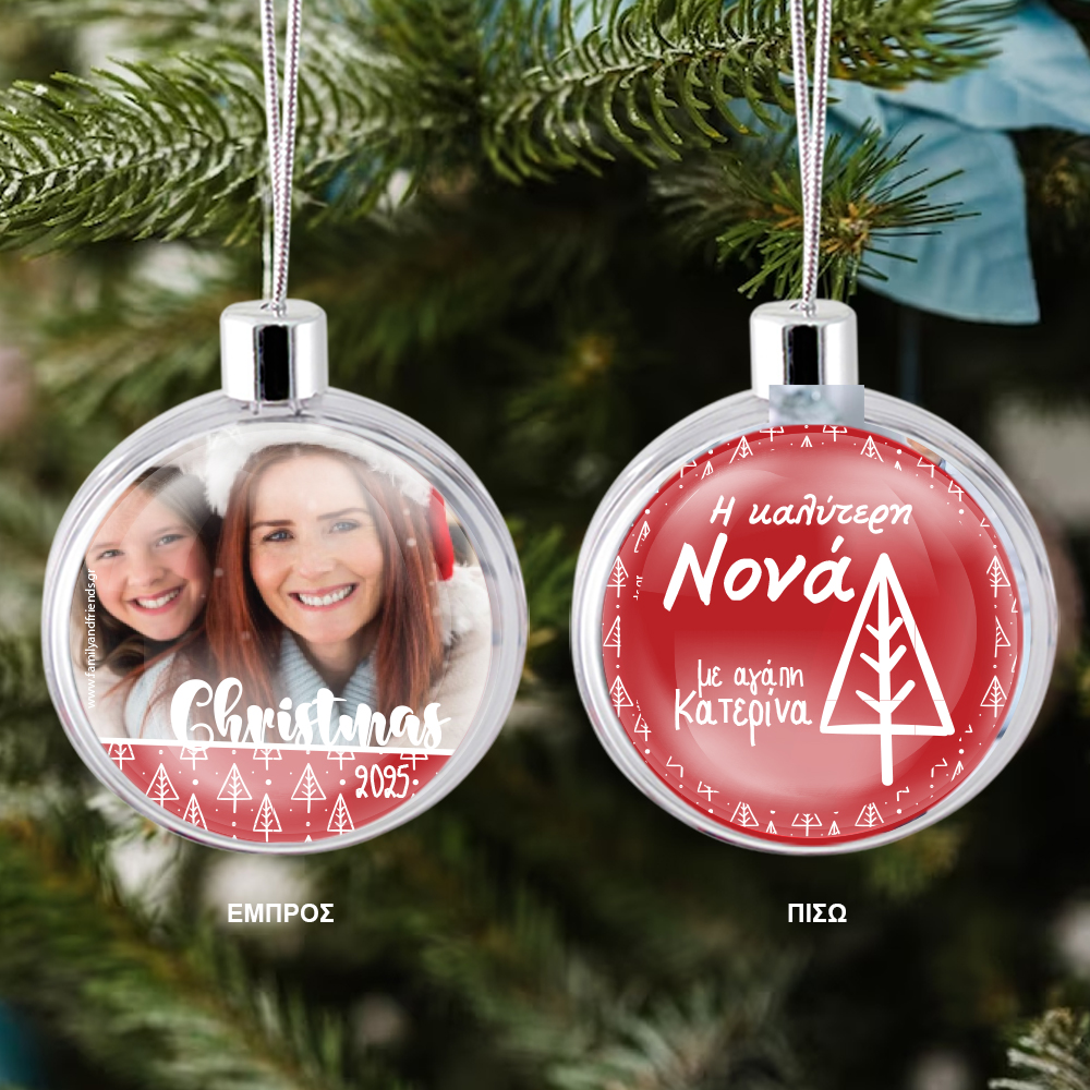 Στο familyandfriends.gr βρείτε μοναδικά προσωποποιημενα χριστουγεννιατικα στολίδια για χριστουγεννιάτικο δένδρο, που ξεχωρίζουν από όλα όσα έχετε αγοράσει τα προηγούμενα χρόνια. Χριστουγεννιάτικο Στολίδι για το δένδρο Μπάλα διάφανη για δένδρο με Όνομα, Έτος δώρο για Νονά για τα χριστούγεννα που είναι σε λίγες ημέρες.