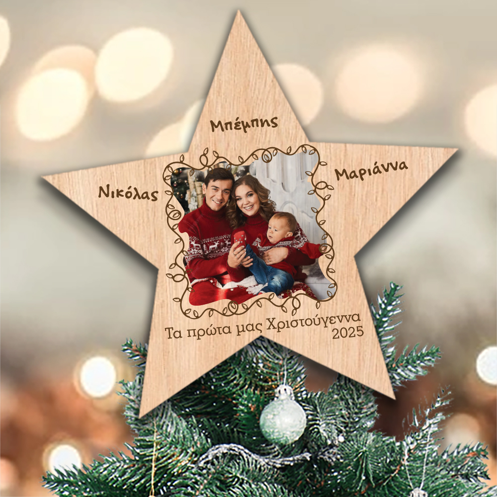 Φέτος κάντε ένα Προσωποποιημένο χριστουγεννιάτικο δώρο στην Μαμά & τον Μπαμπά που θα μείνει για πάντα, Κορυφή Δένδρου Ξύλινο Αστέρι με φωτογραφία, Ονόματα! Επιλέξτε προσωποποιημένα δώρα από το familyandfriends.gr για τα Χριστούγεννα που πλησιάζουν για κάθε φίλο & συγγενή.